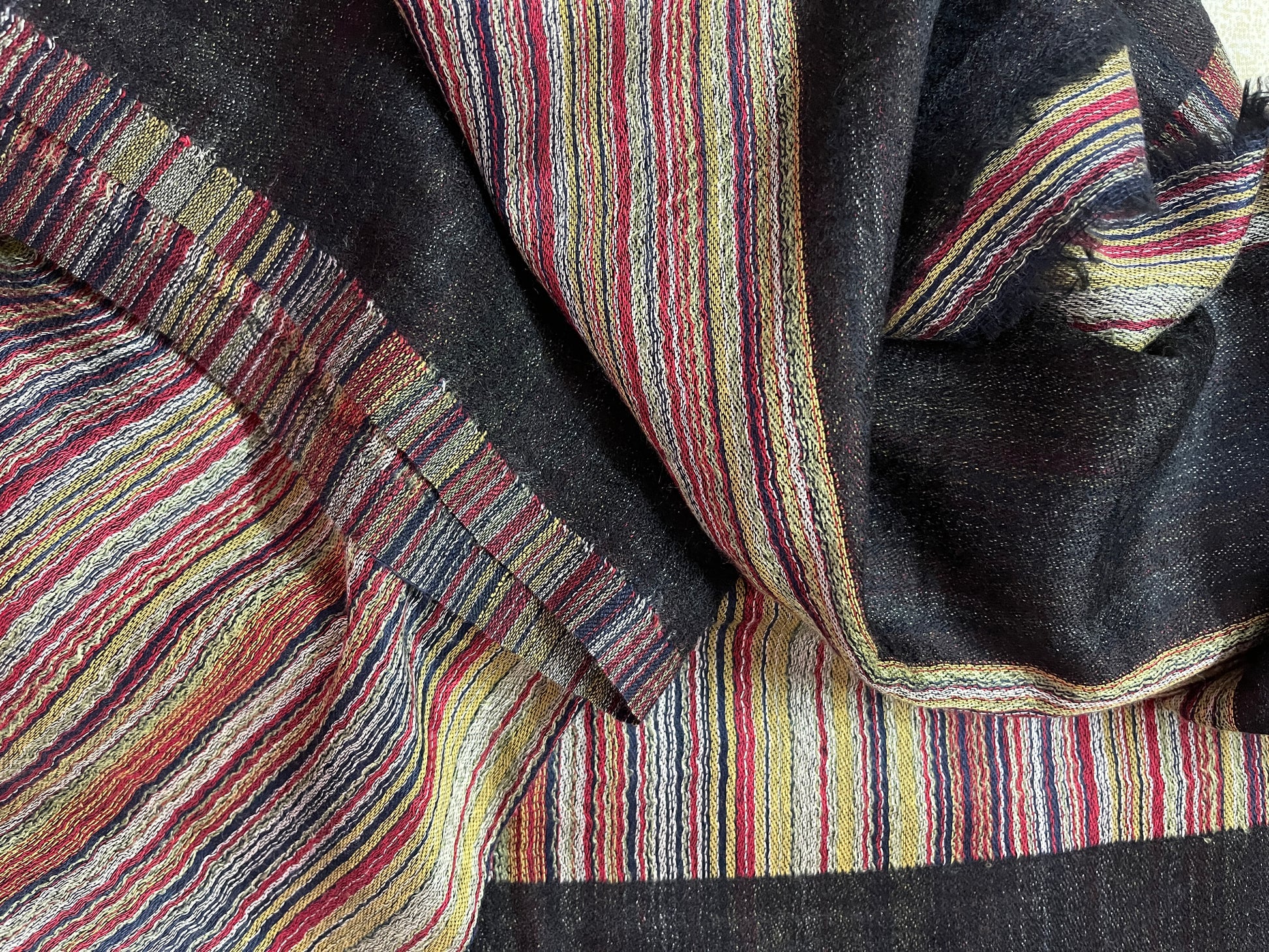 100% Pashmina / Cashmere Woolen Shawl, multicolor gold / black border